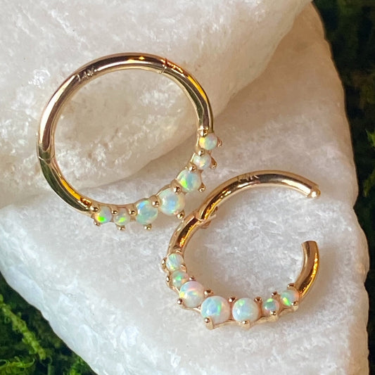 1 Piece Stunning Five Prong Set Opals Tragus Barbell Ring - 16g - Wearable Length 1/4" (6mm)