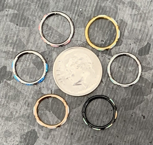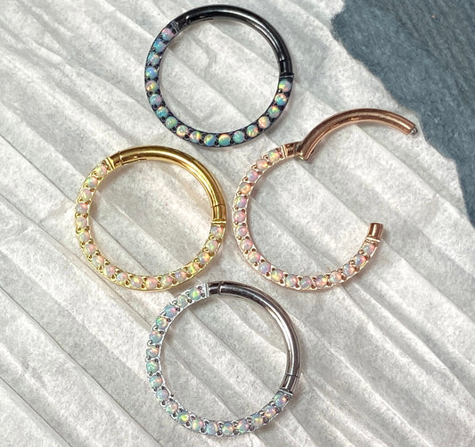 1pc Implant Grade Titanium Opal Front Edge Hinged Segment Septum Ring - Gauge 16g - 8mm - White, Black, Gold & Rose Gold