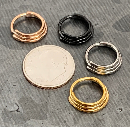 1 Piece Titanium Triple Line Faceted Hinged Segment Hoop Ring - 16g - 8mm or 10mm Internal Diameter - Gold, Rose Gold, Black or Silver