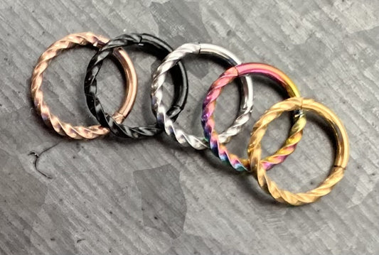1 Piece Unique Twisted Rope Line Steel Septum Hinged Segment Ring- 16g - Internal Diameter 10mm