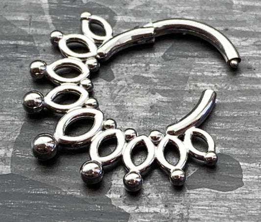 1 Piece Beautiful Beaded Crown Surgical Steel 16g Hinged Segment Ring
