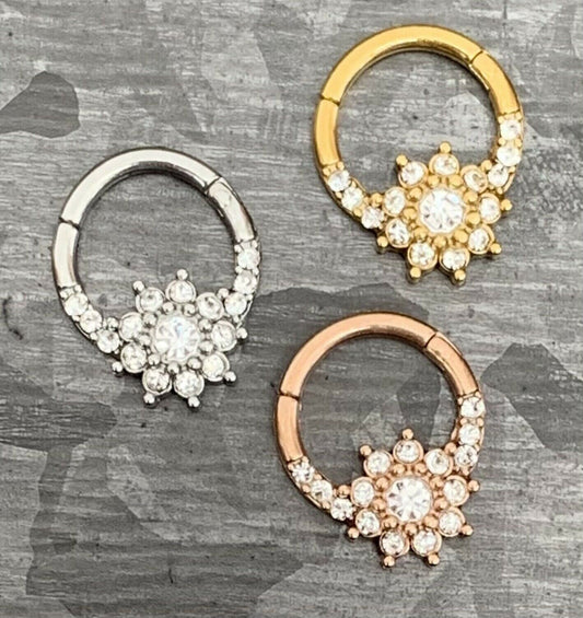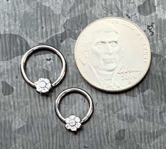 1 Piece of Stunning Titanium CZ Gem Flower Hinged Segment Ring - 16g or 18g - 10mm or 8mm