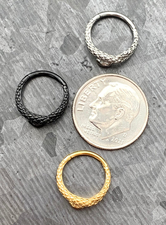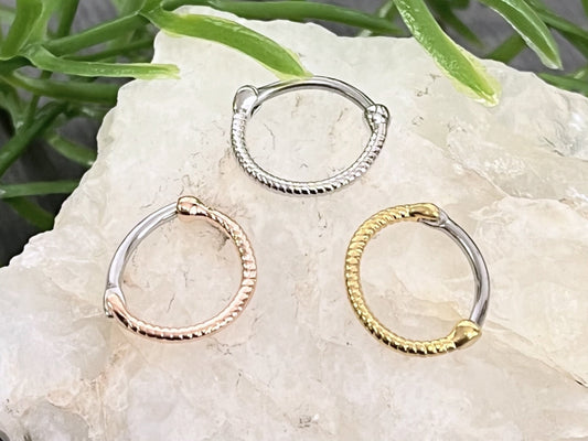 1 Piece Unique Coiled Snake Steel Hinged Segment Ring - 16g - 8mm or 10mm internal diameter