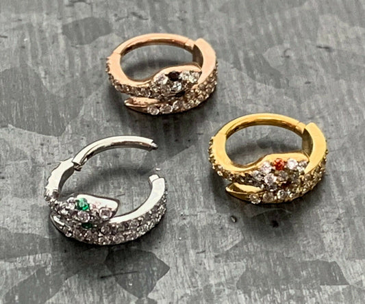 1 Piece of Dazzling CZ Gem Coiled Snake Steel Hinged Segment Ring - 16g, 8mm internal diameter