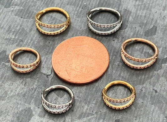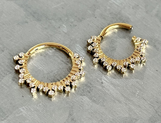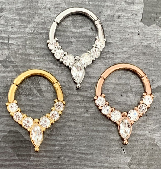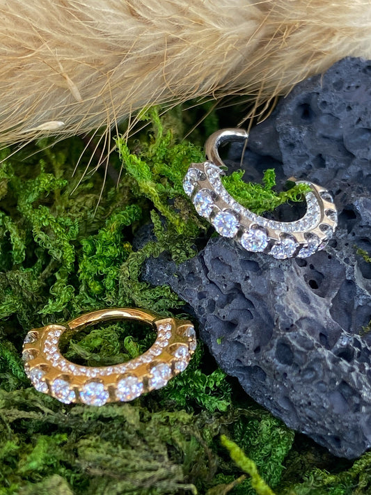 1 Piece Brilliant CNC Front & Outer CZ Gems Hinged Segment Septum Ring - 16g - 10mm