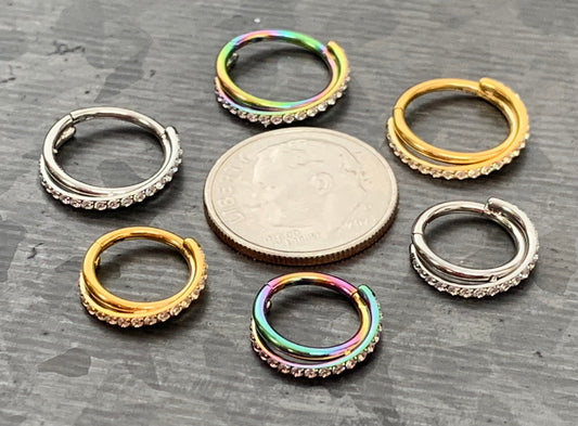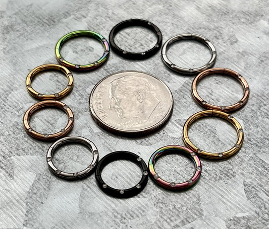 1 Piece of Titanium CZ Gems Hinged Segment Hoop Ring - 16g - 8mm or 10mm Internal Diameter