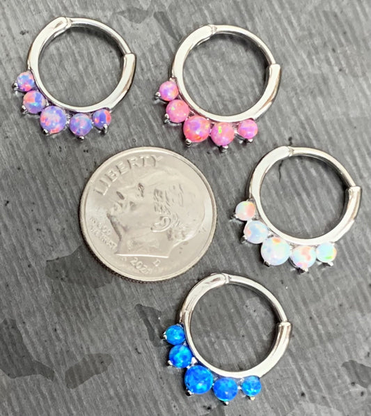 1 Piece Stunning Five Opal 316L Surgical Steel Hinged Septum Segment Ring - 16g