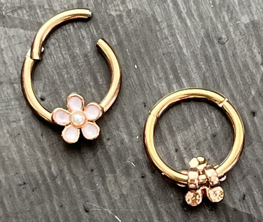 1 Piece Enamel Flower Hinged Steel Segment Septum Ring - 16g - 8mm Gold, Rose Gold or Steel!