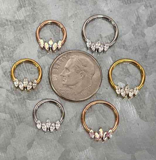 1 Piece of Stunning Marquise CZ Gem Hinged Steel Segment Ring - 16g, 8mm internal diameter