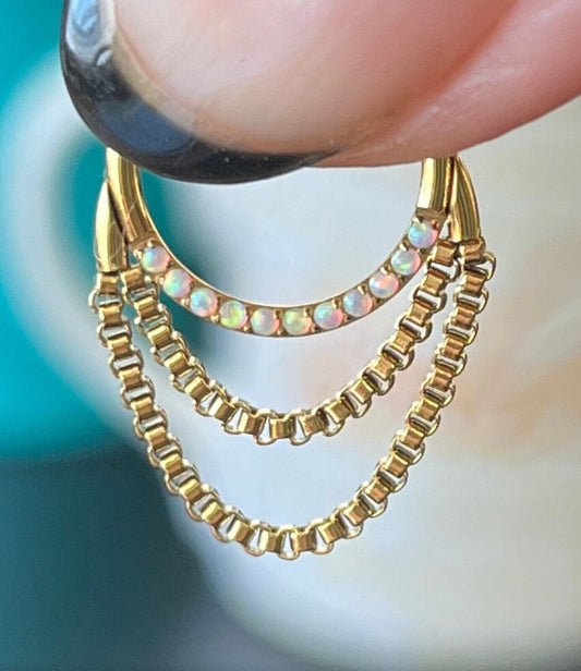 1 Piece of Stunning Front Gems or Opals Chain Hinged Segment Septum Ring - 16g, 10mm or 8mm