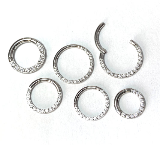 1 Piece Steel CNC Set CZ Gem Front Hinged Segment Septum Ring - Gauges 14g, 16g or 18g - Internal Diameter 6mm, 8mm or 10mm