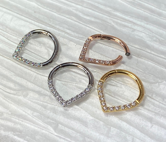 1 Piece of Implant Grade Titanium Opal Heart w/ Paved Sides Hinged Segment Ring - 16g - 10mm, 8mm