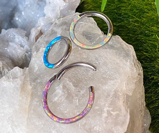 1pc Implant Grade Titanium Opal Front Edge Hinged Segment Septum Ring Daith Ear Cartilage Body Piercing Jewelry