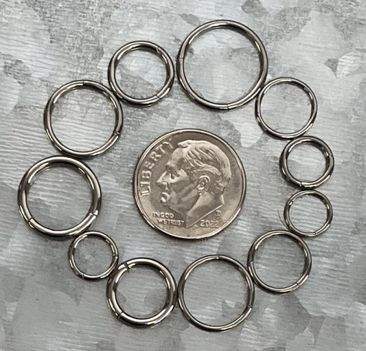 1 Piece Brilliant Implant Grade Titanium Silver Hinged Segment Septum Ring - 20g, 18g, 16g, 14g - Assorted Diameters!