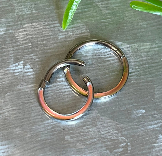 1 Piece of Beautiful Silver Steel Hinged Segment Septum Ring/Hoop - Gauges 10g, 12g, 14g, 16g, 18g & 20g