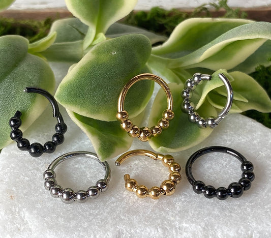 1 Piece Beautiful Solid Titanium Seven Ball Hinged Segment Septum Ring - Gauge 16g - 8mm or 10mm - Black, Gold or Silver!