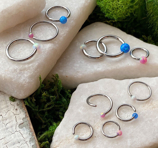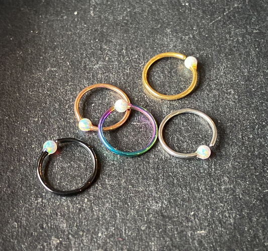 5pc Bulk Pack Fixed Opal Ball Bendable 316L Surgical Steel Captive Bead Rings