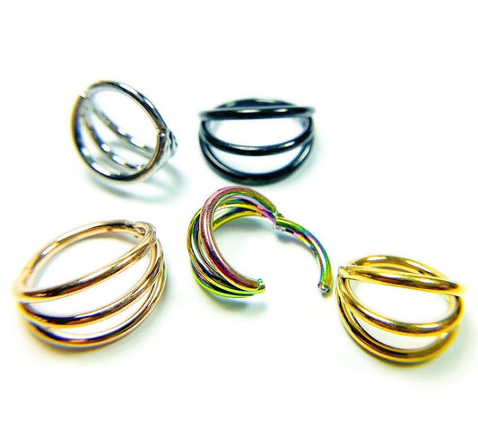 1pc Solid Titanium Triple Hoop Hinged Segment Ring Helix Cartilage Clicker