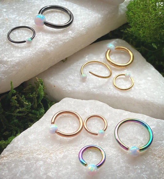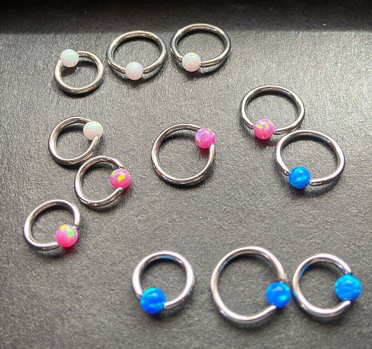 PAIR Synthetic Opal Ball Captive Bead Rings Tragus Helix CBR Body Jewelry