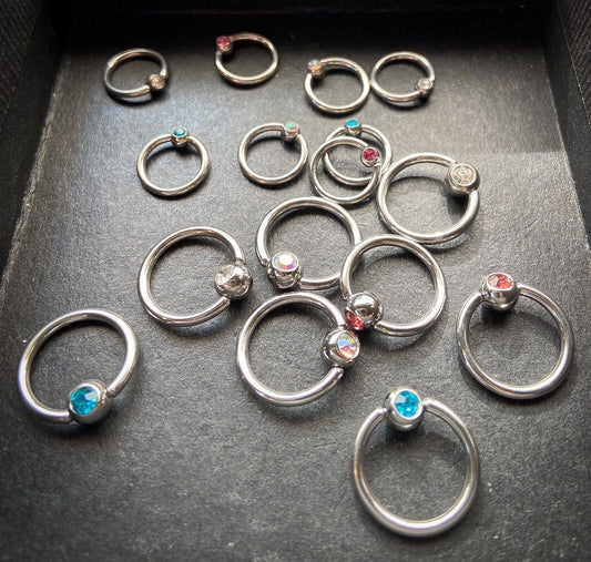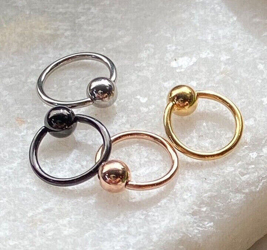 4pc Bulk Pack Steel, Black, Gold, Rose Gold Fixed Ball Captive Bead Rings 20g