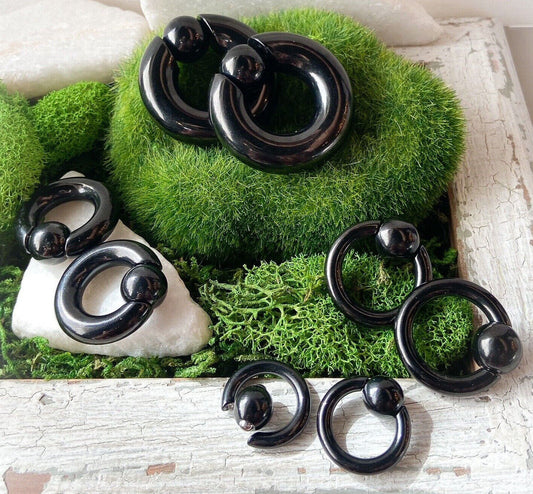 PAIR Black Acrylic Segment Rings Captive Bead CBR's Lightweight Body Jewelry