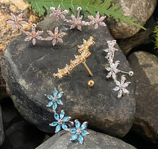1pc Marquise CZ Gem Flowers Curve Helix Barbell Tragus Cartilage Ring 16g 1/4"