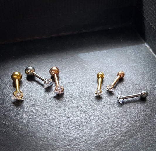 3pcs Triangle CZ Gem Ion Plated Tragus Stud Helix Cartilage Ring Earring 16g 1/4