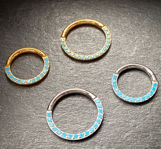 1pc Titanium Hinged Segment Ring Front Turquoise Septum Hoop Helix Daith Jewelry