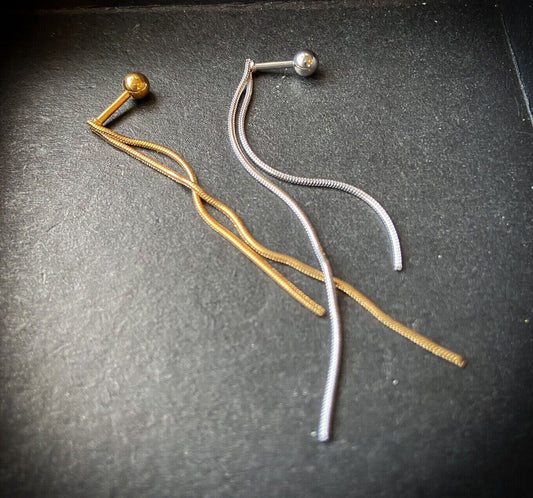 1pc Double Chain Dangle Tragus Stud Helix Cartilage Ring 16g 1/4" Barbell