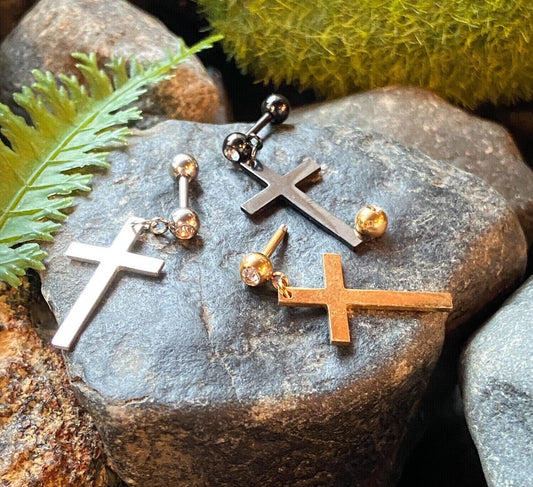 1pc Cross Dangle Tragus Stud Helix Cartilage Ring 16g 1/4"- choose your color
