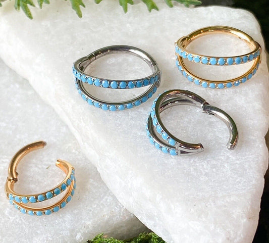 1pc Titanium Hinged Segment Ring Double Outer Turquoise Septum Hoop Helix Daith