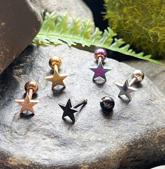 1pc Flat Star Top Helix Tragus Cartilage Bar Stud Earring 316L Surgical Steel