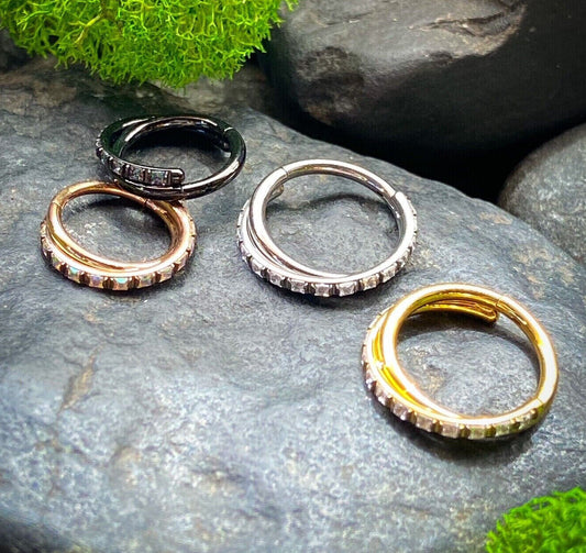 1pc Titanium Criss Cross Hoop CZ Gem Hinged Segment Ring 16g Septum Helix
