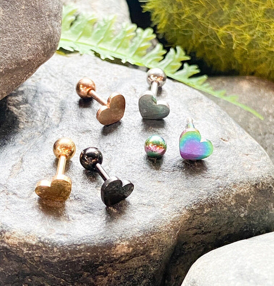 1pc Flat Heart Top Helix Tragus Cartilage Bar Stud Earring 316L Surgical Steel