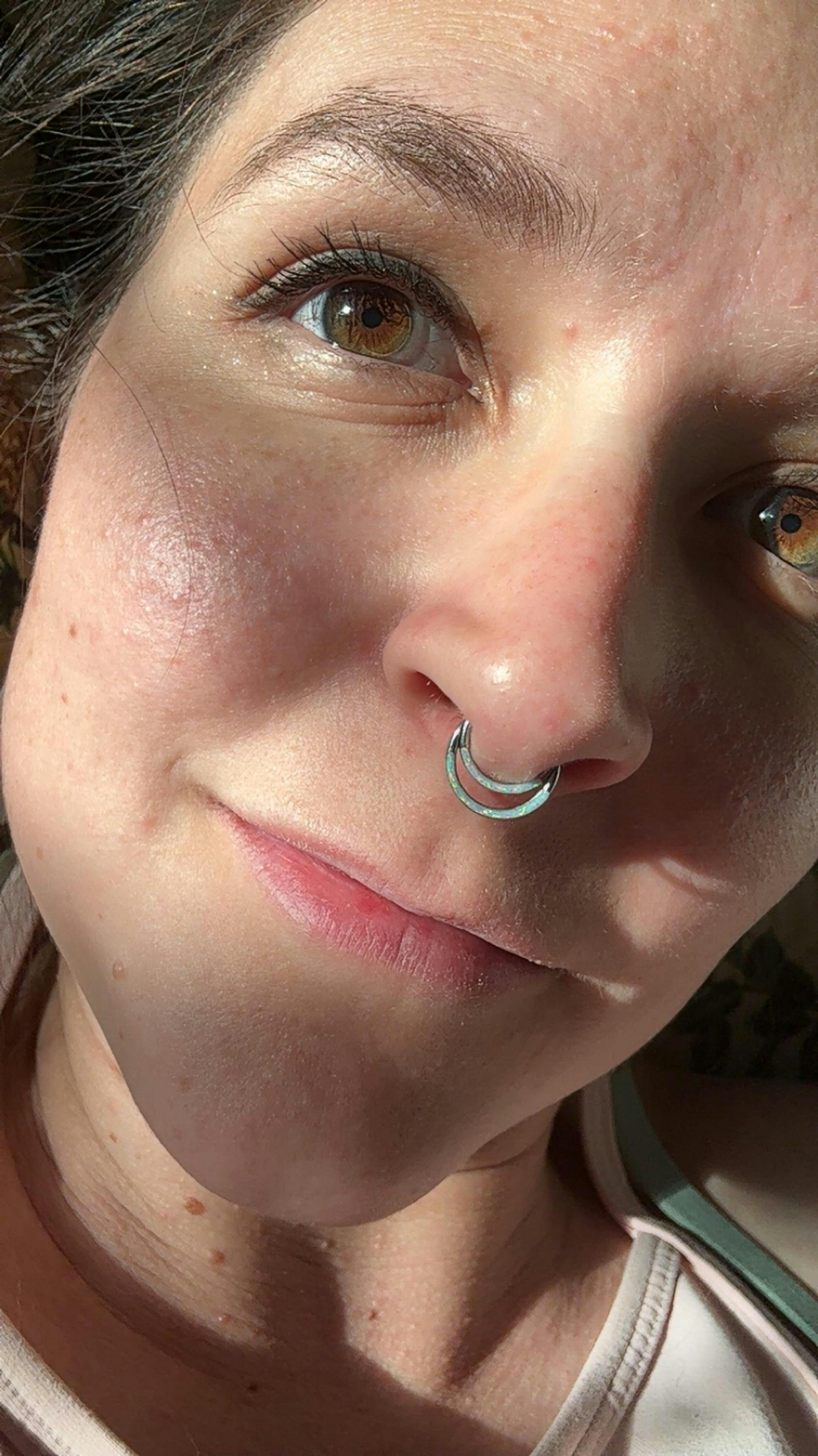 1 Piece of Stunning Double Opal Lined Front Hinged Steel Septum Segment Ring - 16g - 8mm or 10mm