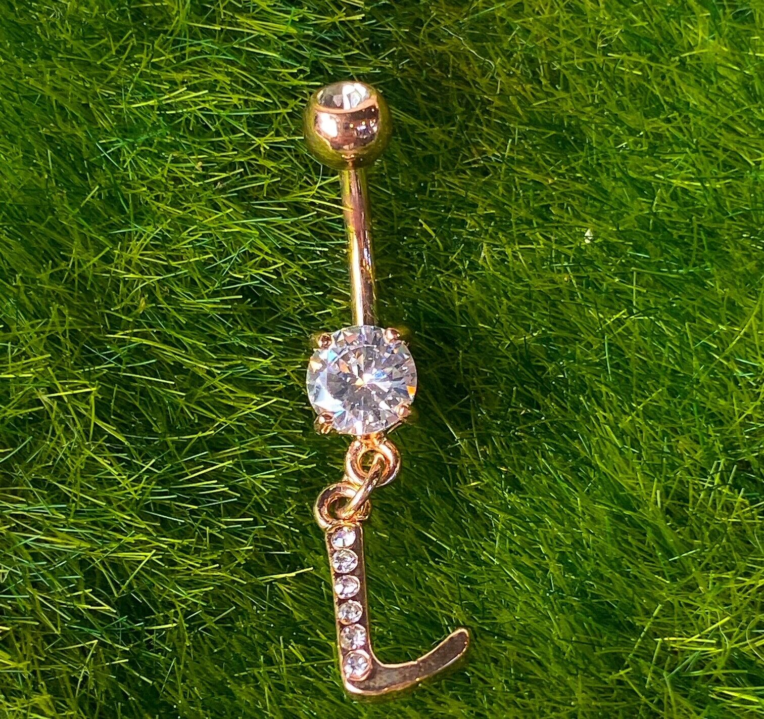 14kt Rose Gold Plated Initial Dangle Belly Ring Pierced Navel Naval Letter