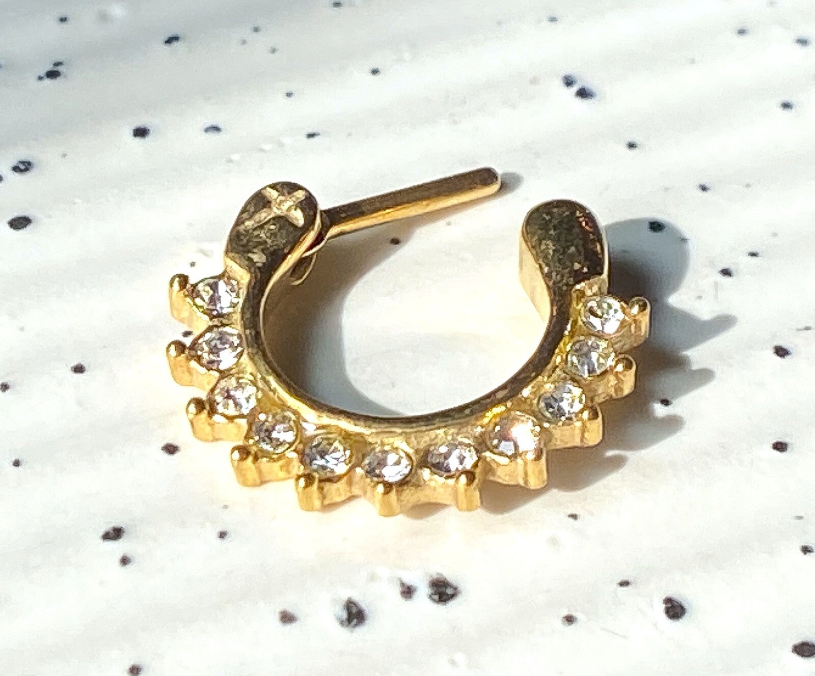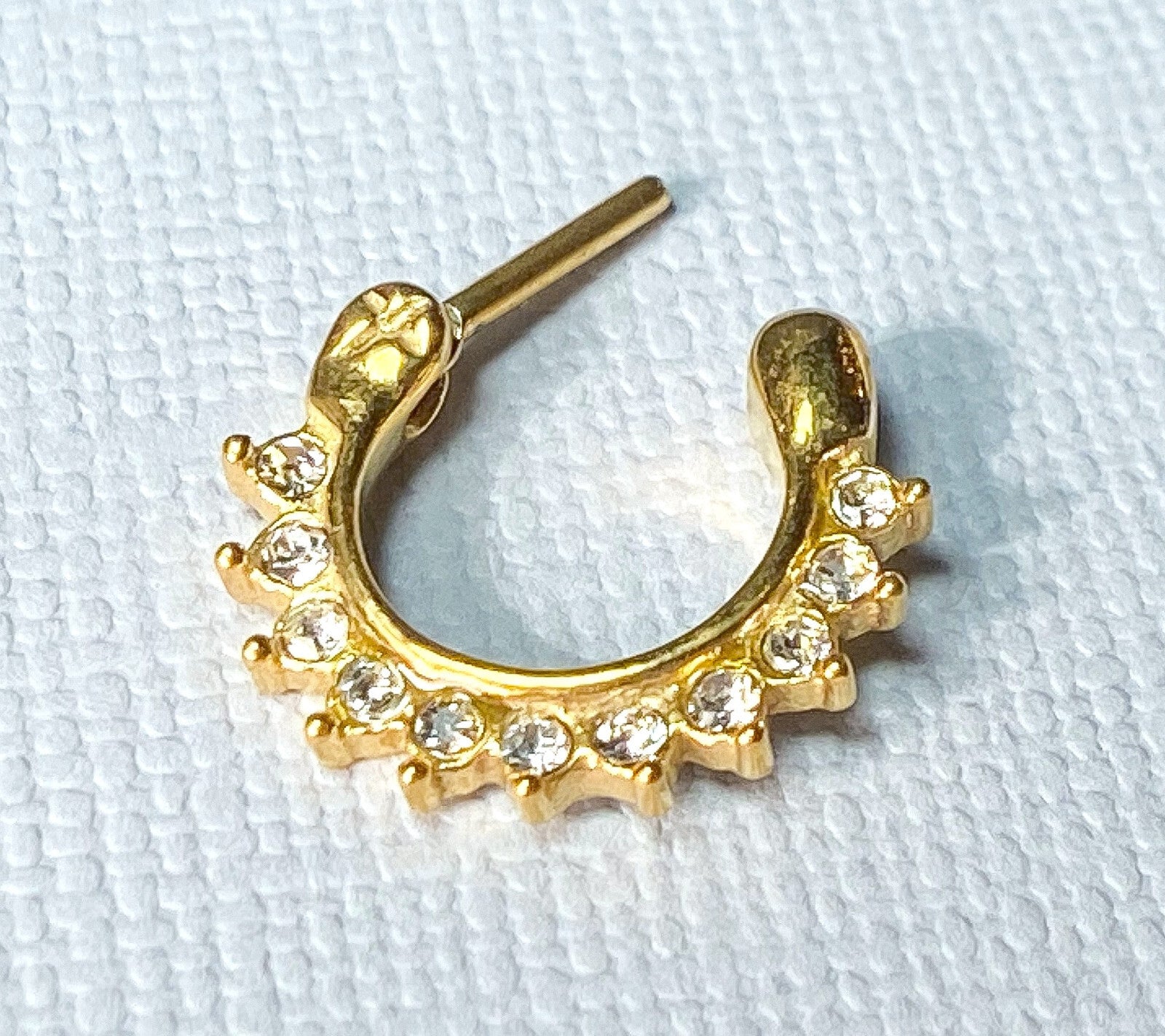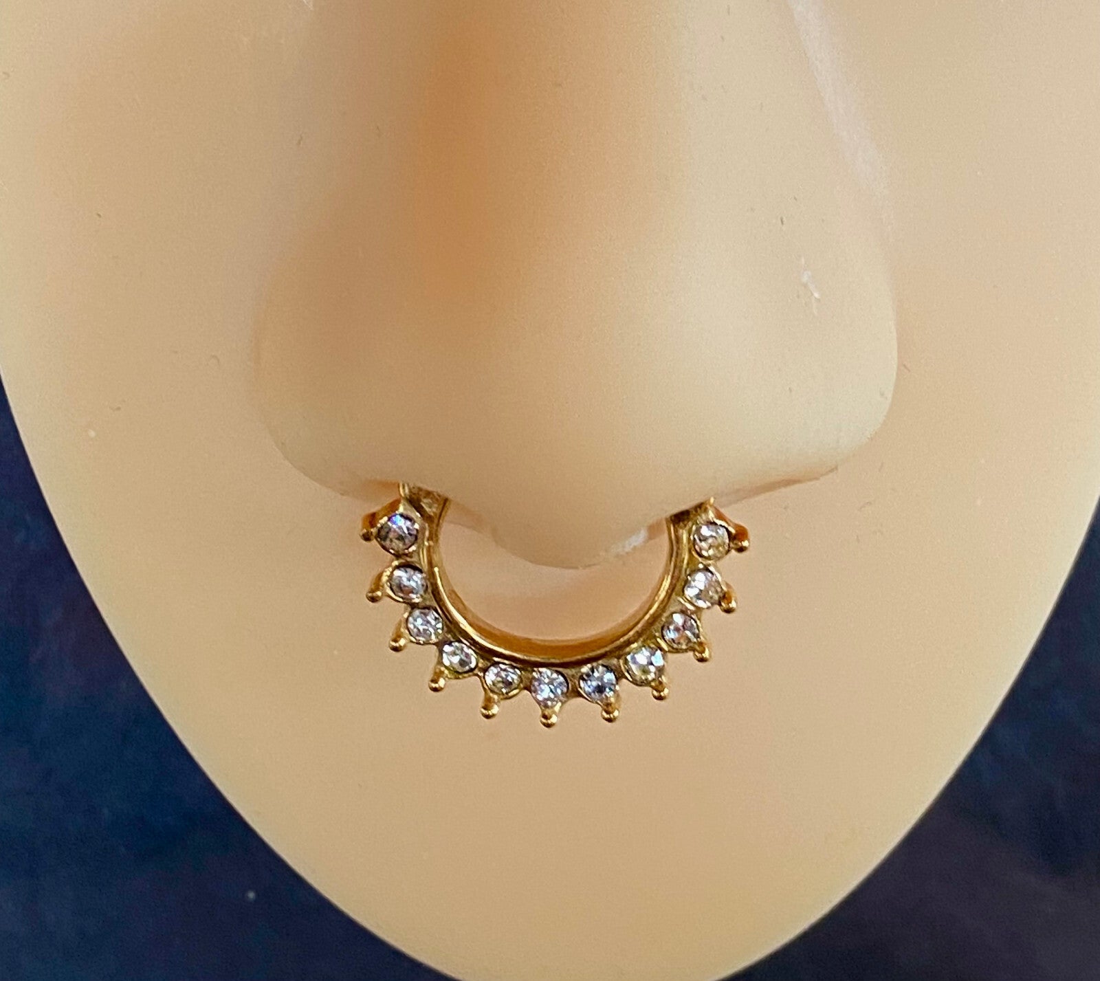 1pc 100% SURGICAL STEEL Crystal Paved Septum Clicker Pierced Nose Ring 14g 16g