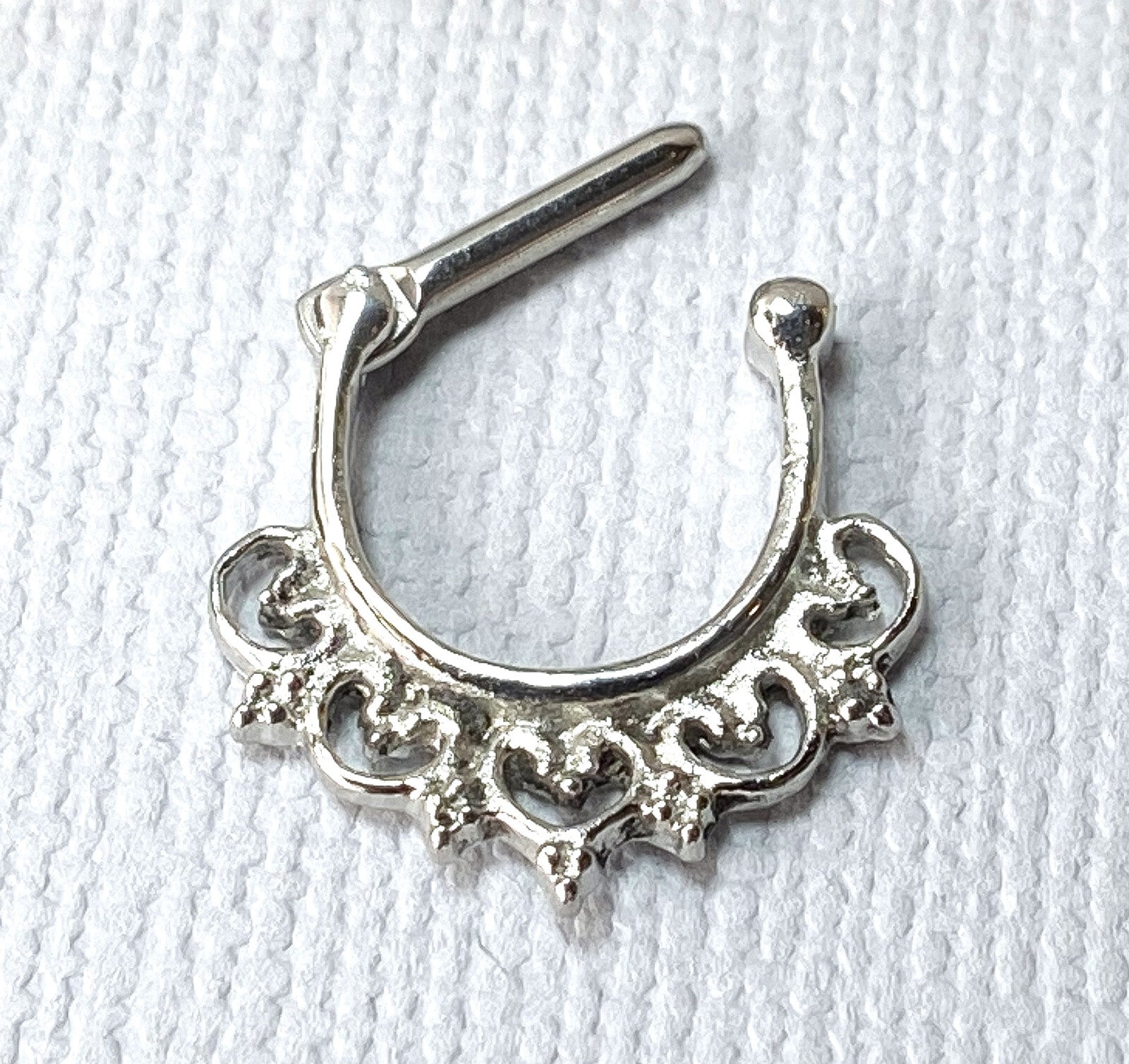 1pc 100% SURGICAL STEEL Wide Heart Filigree Clicker Pierced Nose Ring 14g 16g