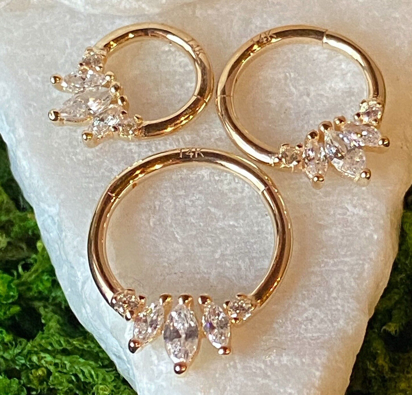 1pc Solid 14kt Gold Three Marquise Gems Hinged Segment Ring Helix Cartilage Clicker