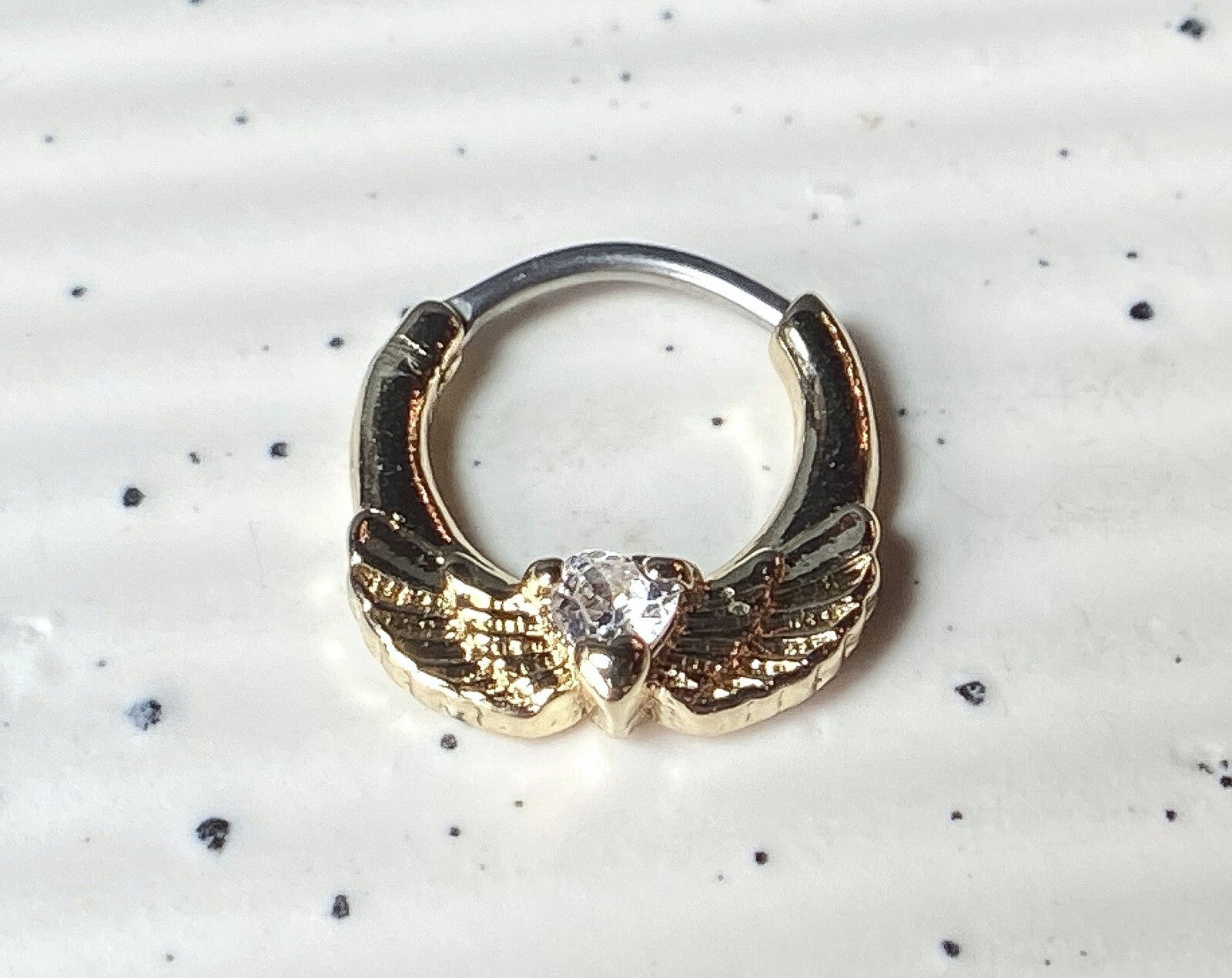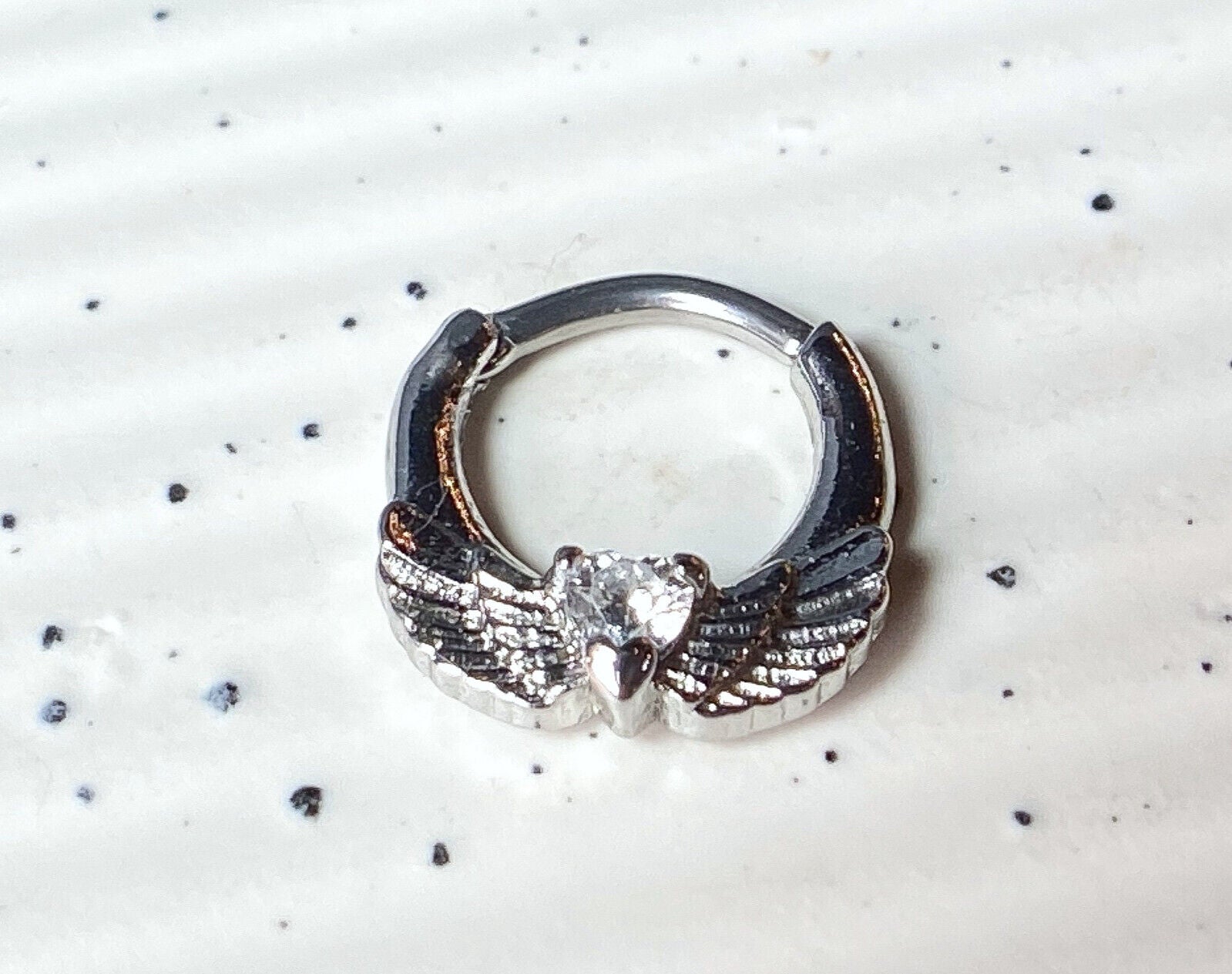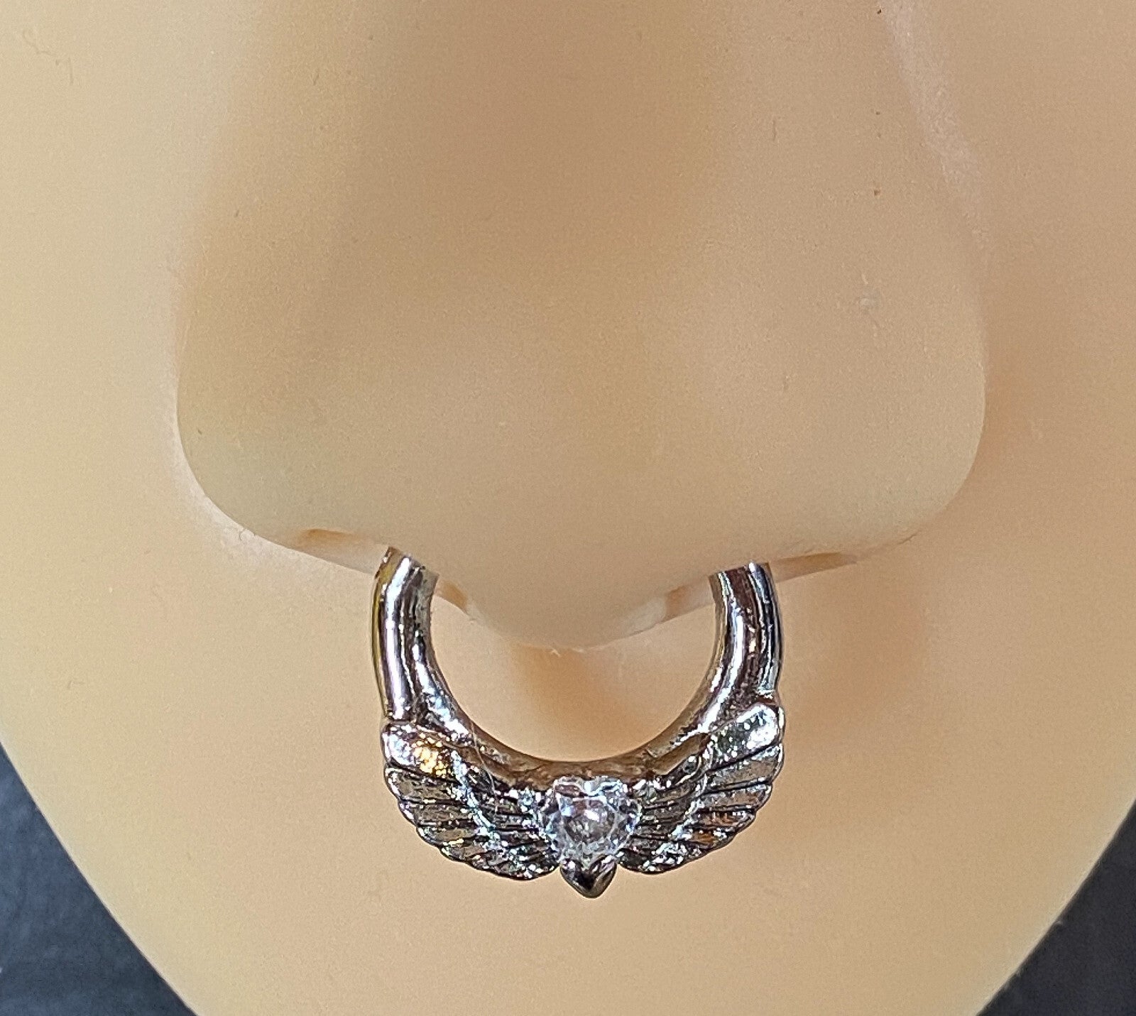 1pc Angel Wings w/Heart CZ Gem Septum Clicker Nose Ring Body Jewelry