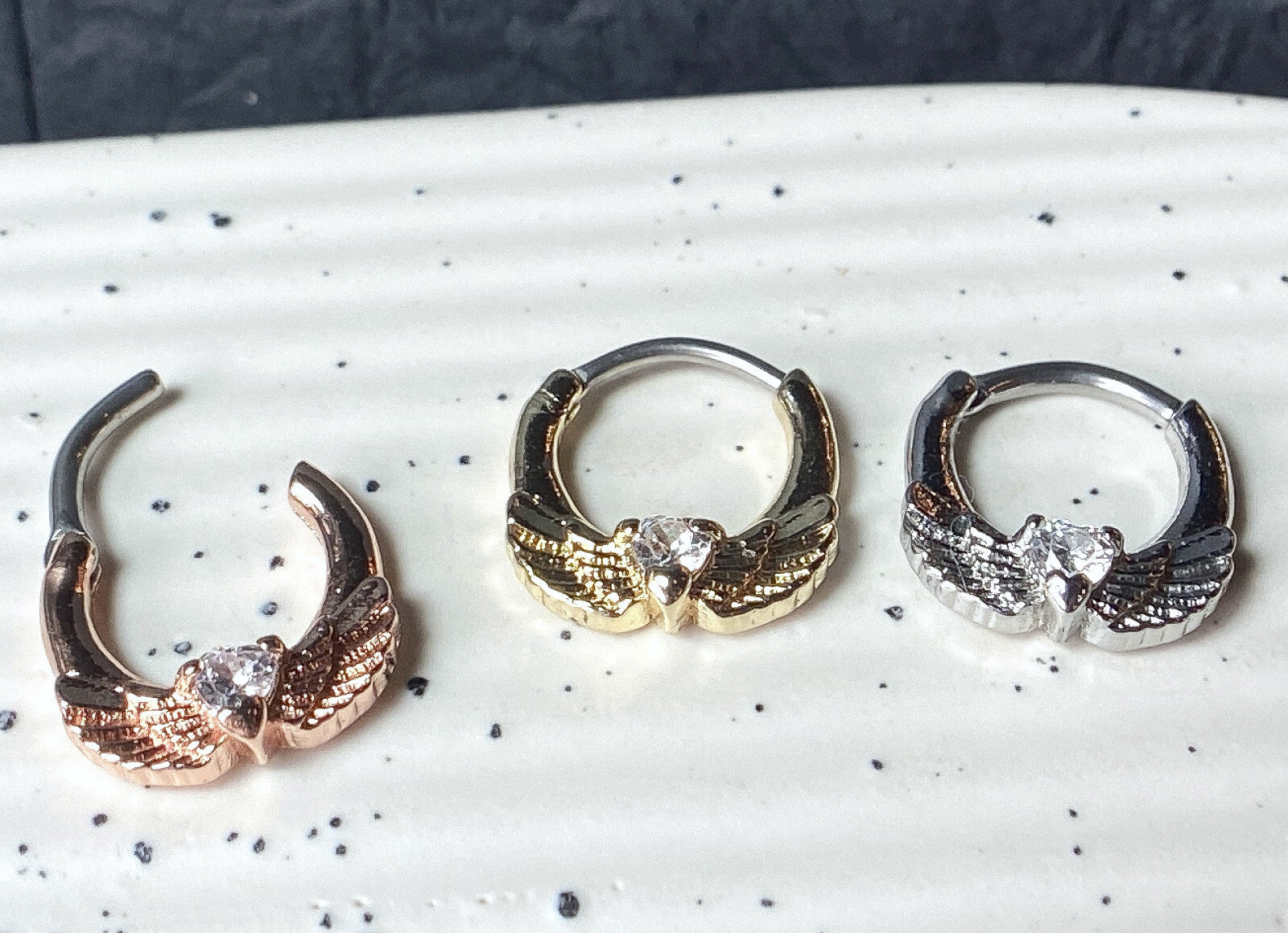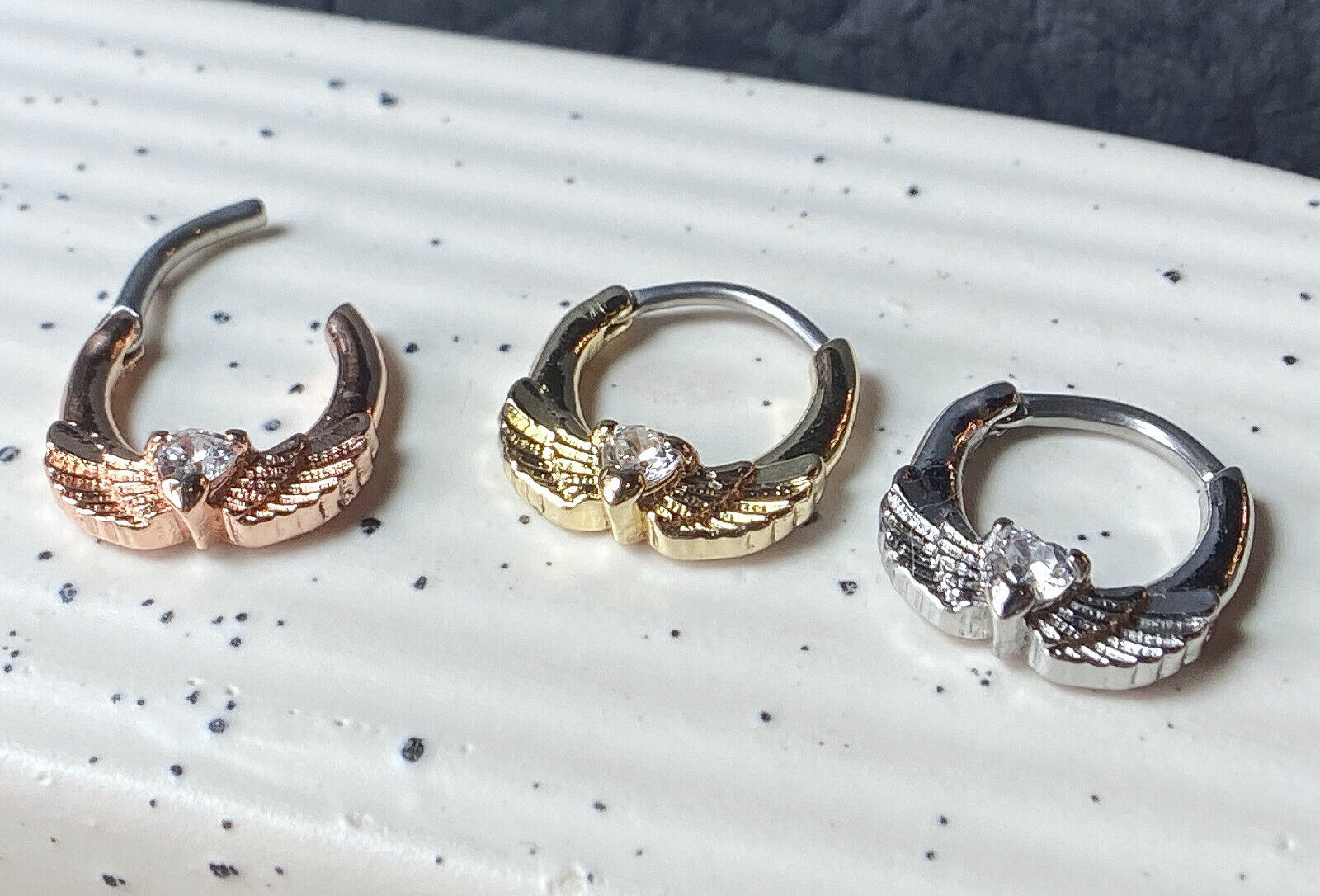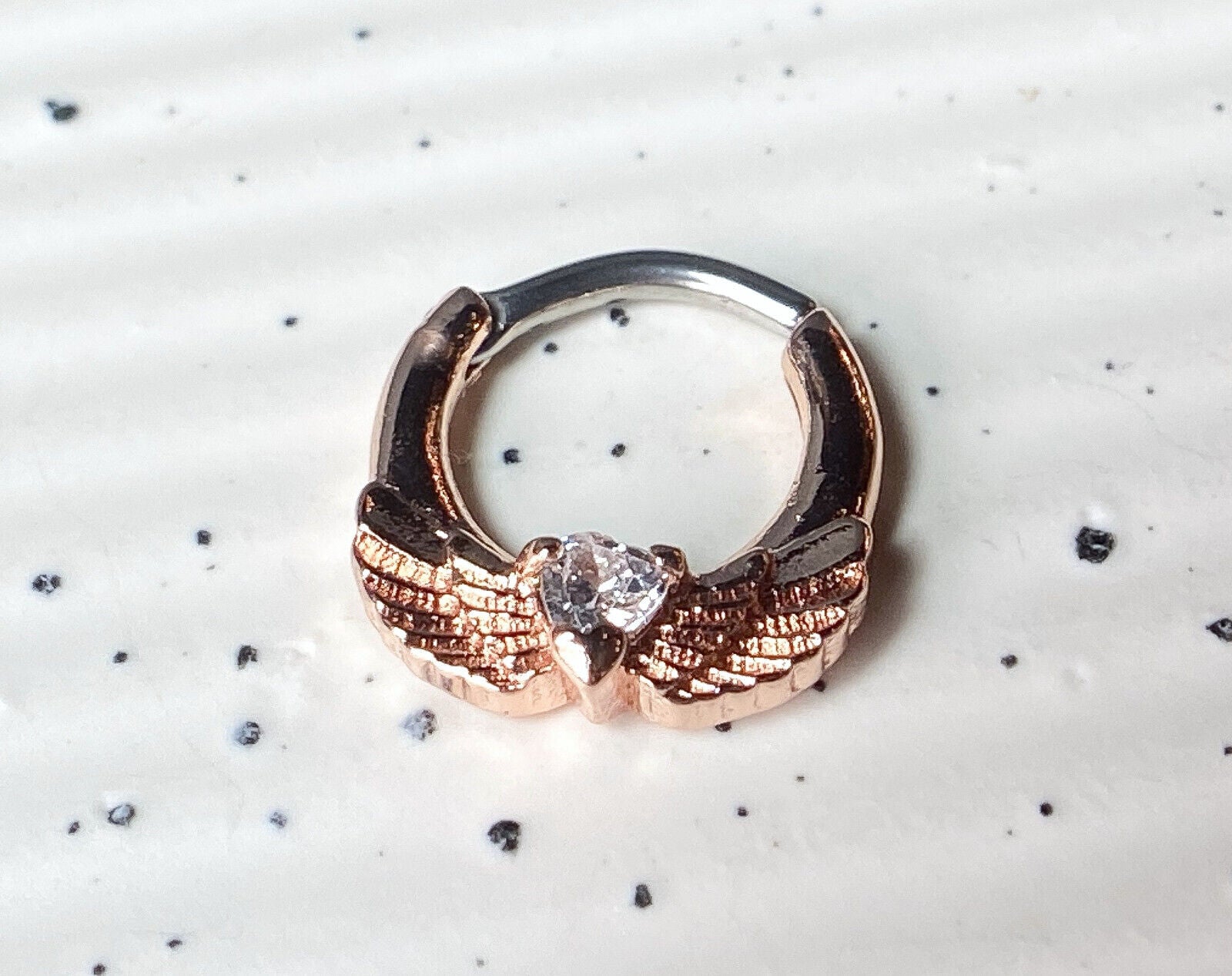 1pc Angel Wings w/Heart CZ Gem Septum Clicker Nose Ring Body Jewelry