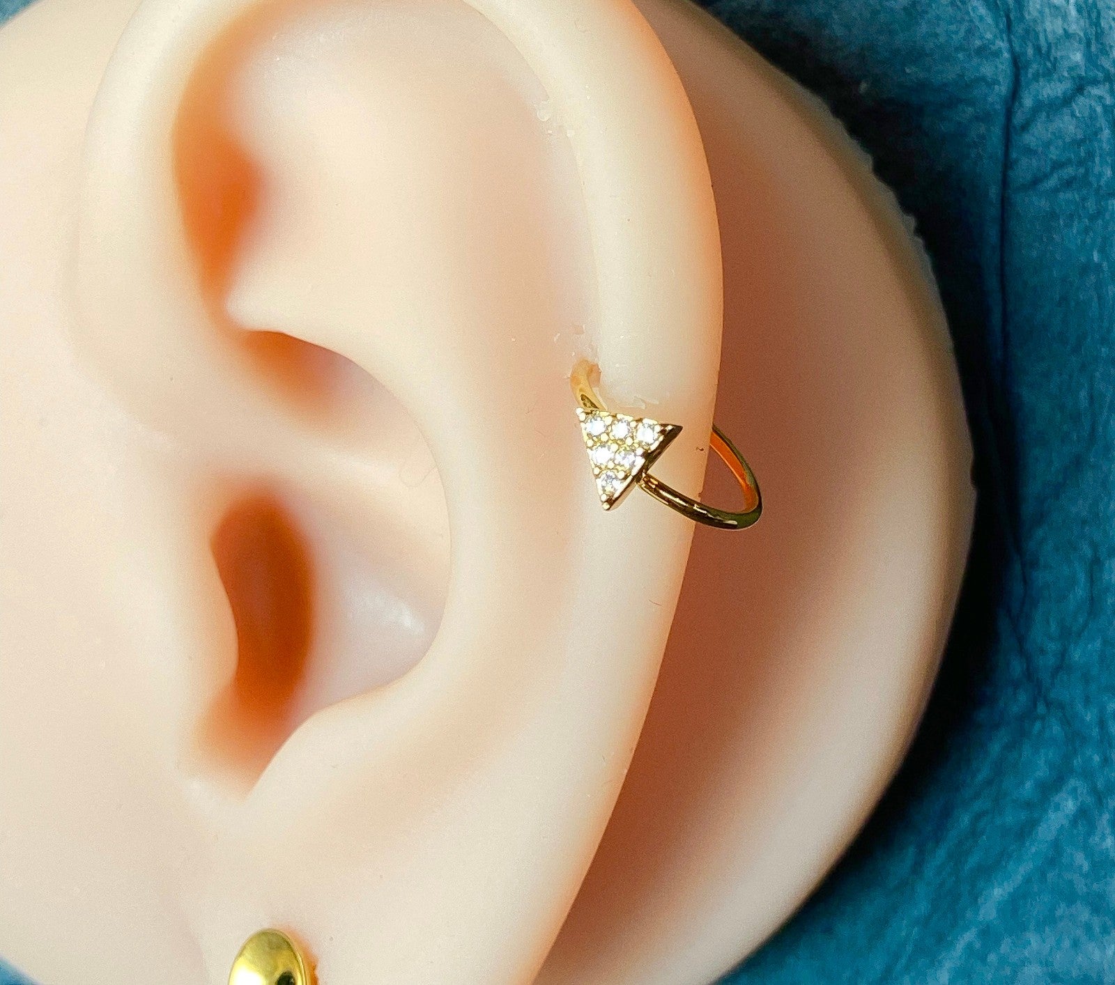 1pc Bendable Hoop / Cartilage Ring CNC Set CZ Gem Triangle for Nose, Rook, Daith