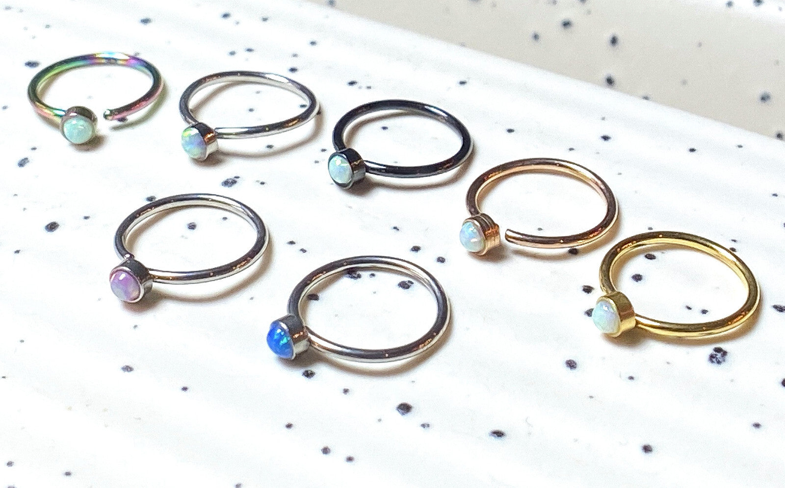 1pc Bendable Hoop Nose / Cartilage Ring w/ Set Opal Rook Daith Helix Tragus