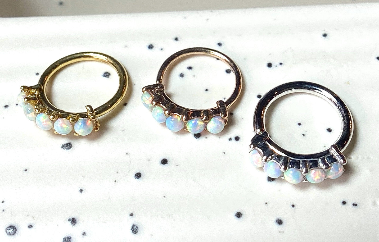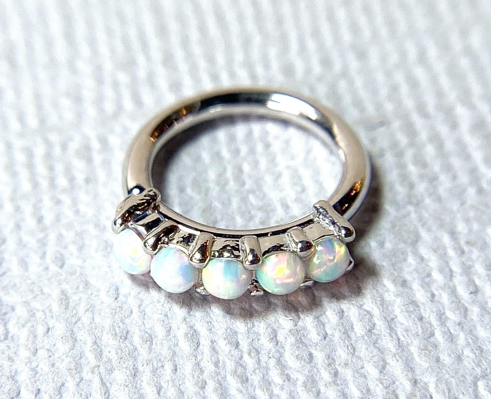1pc Bendable Hoop Ring With Five Prong Set Opals Annealed 316L Surgical Steel