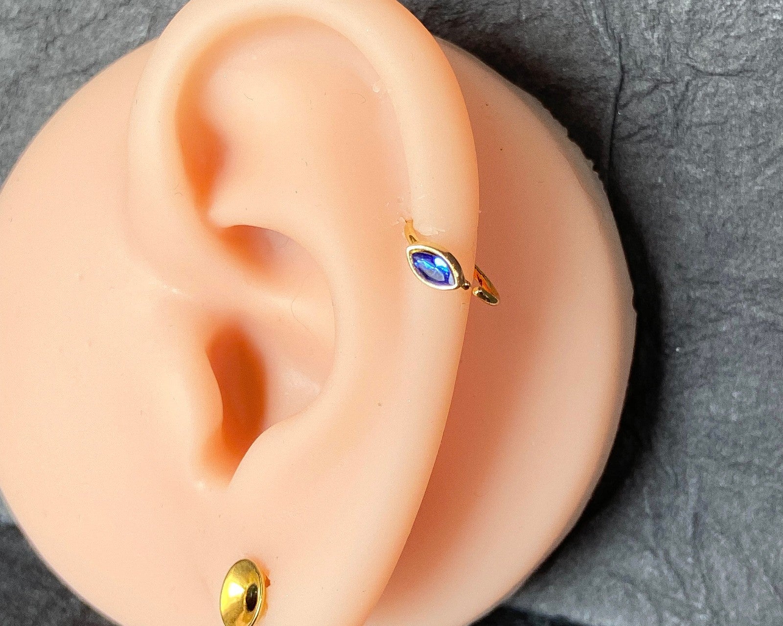 1pc Bendable Nose Hoop / Cartilage Ring Bezel Set Marquise Gem for Rook, Daith