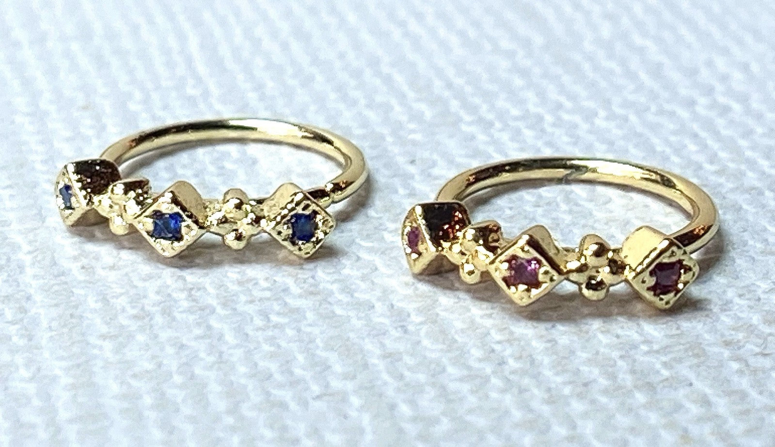 Materials: 316L surgical steel hoop, gold plated brass design/gem settings, CZ gems