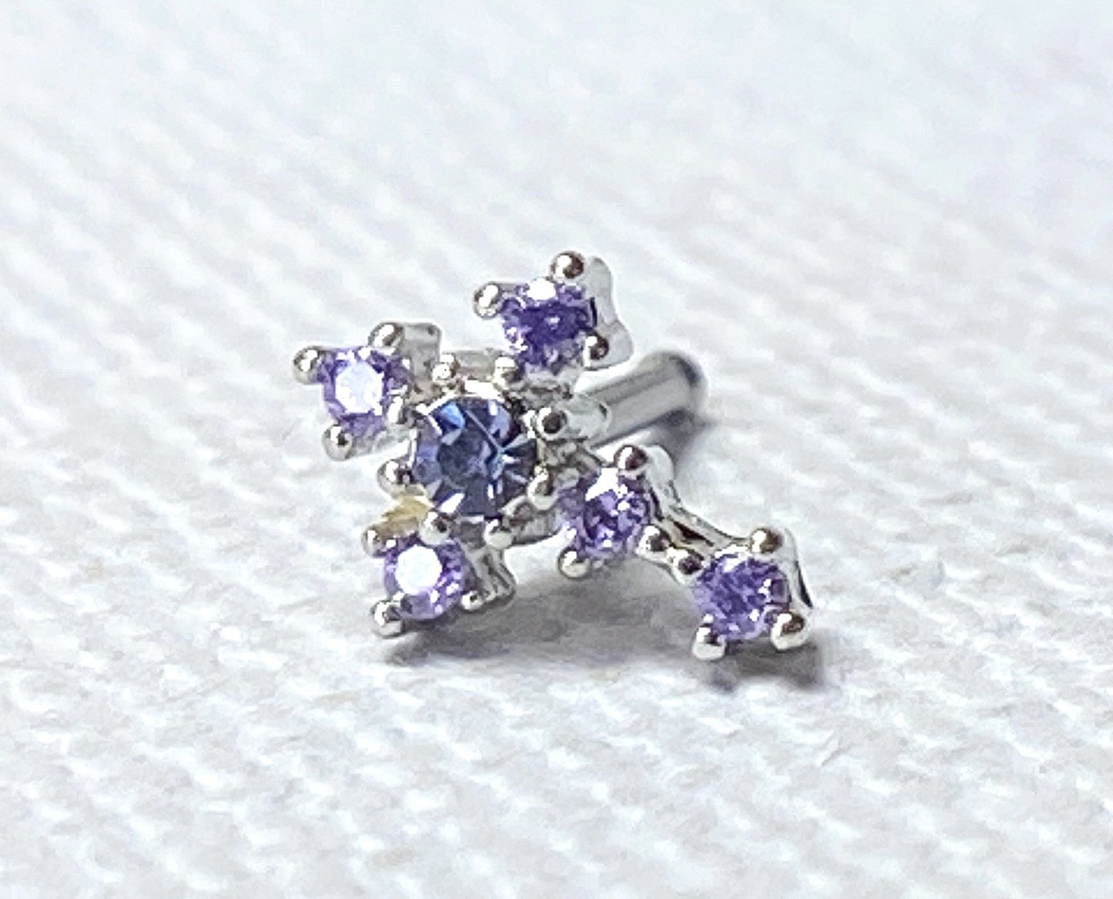 1pc CZ Gem Cross 20g Nose Ring Stud Bone 316L Surgical Steel