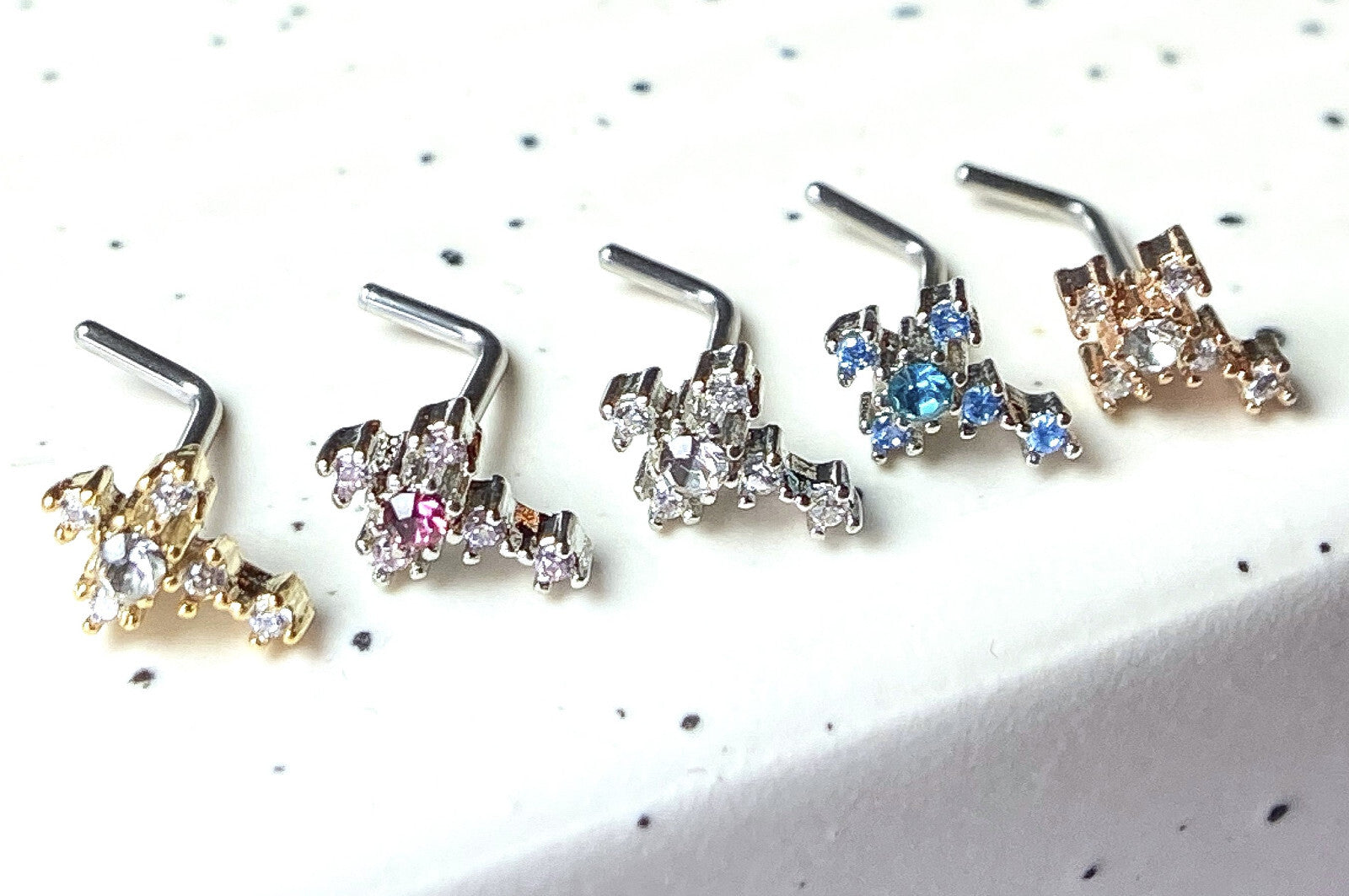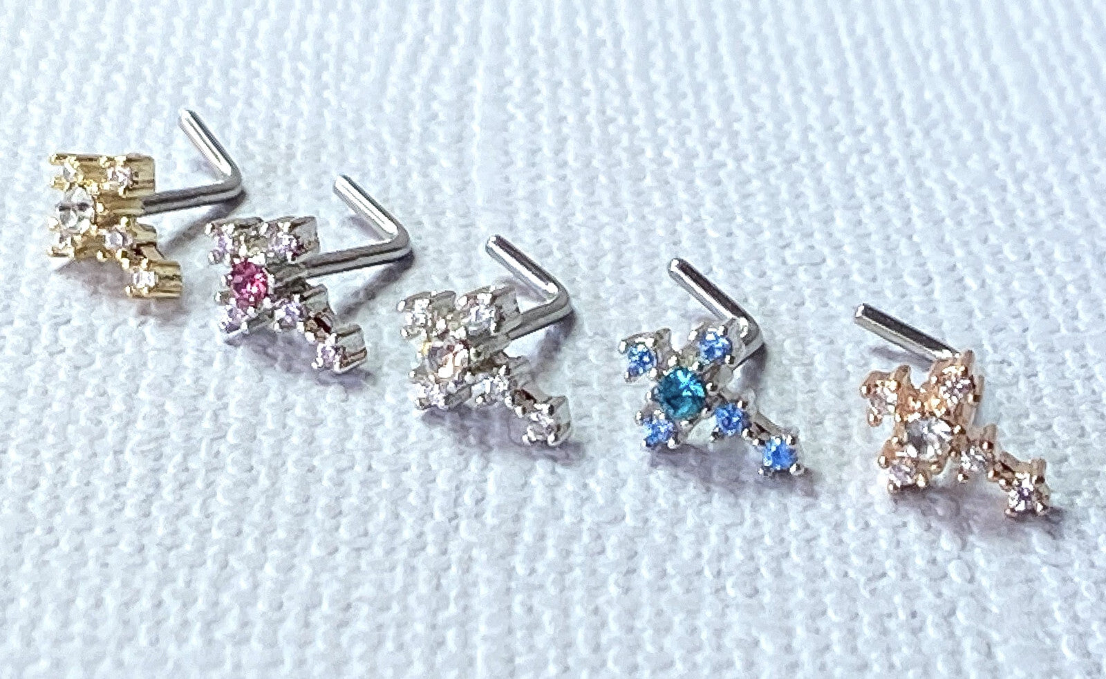1pc CZ Gem Cross L-Bend 20g Nose Ring Stud Screw 316L Surgical Steel