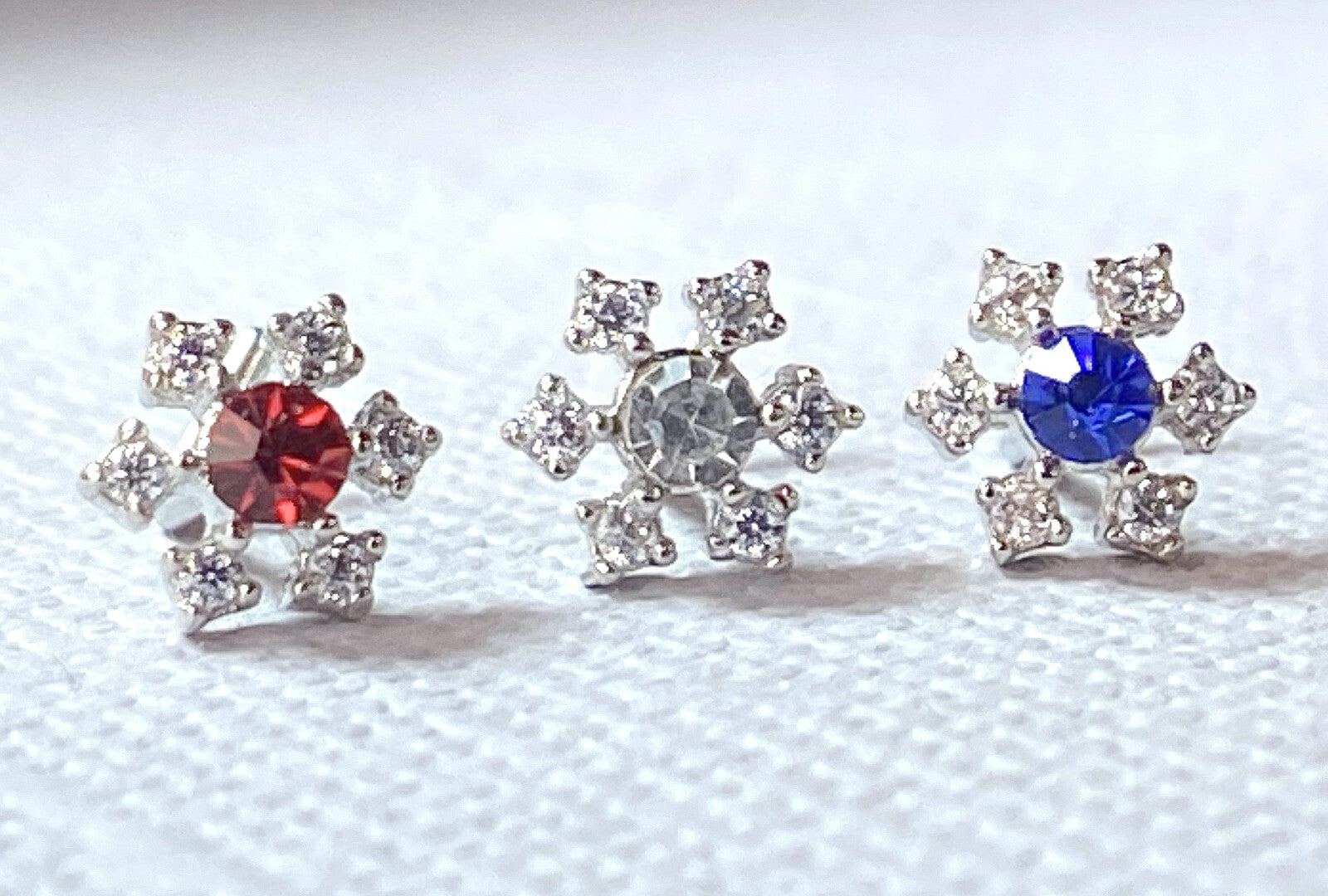 Materials: 316L surgical steel post, rhodium plated brass design/gem setting, CZ gems