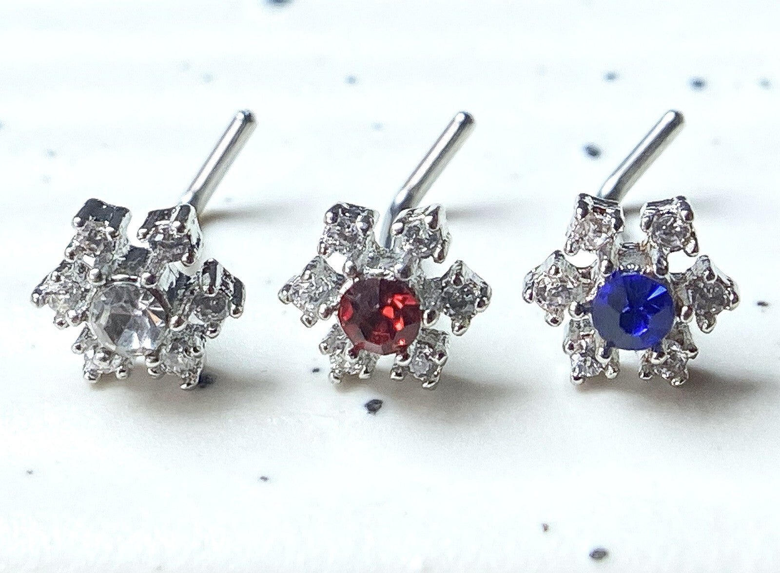 1pc CZ Gem Flower L-Bend 20g Nose Ring Stud Screw 316L Surgical Steel